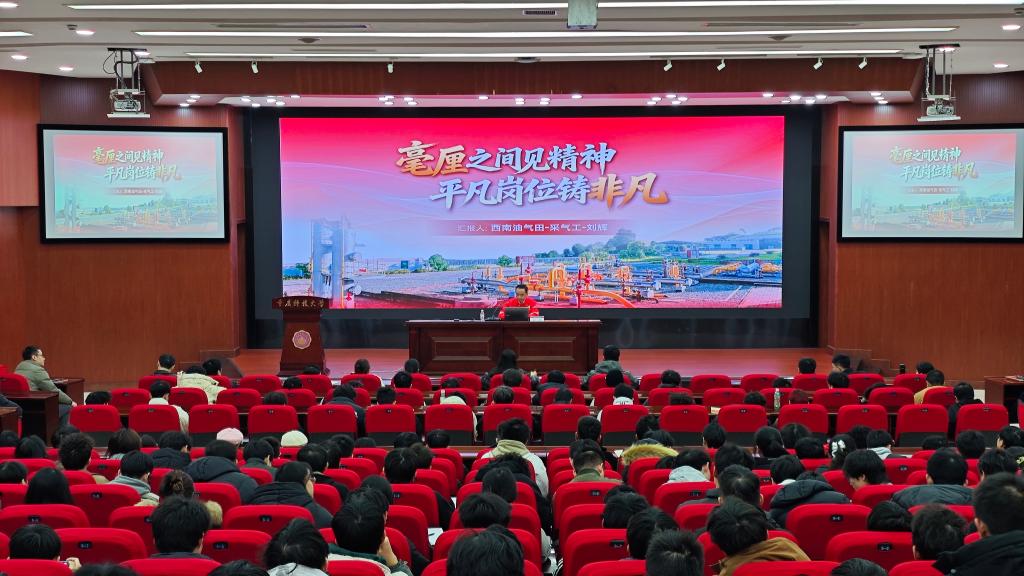 12月26日下午,中石油集团技能专家、西南油气田重庆气矿工艺研究所采气高级技师、“大国工匠”刘辉,受邀为安全科学与工程学院全体师生作题为“毫厘之间见精神,平凡岗位铸非凡”的专题报告,一场连接生产一线与高校课堂的匠心对话在我校学术报告厅展开。